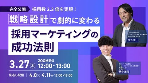 Zenken株式会社(本社:東京都港区、代表取締役社長:林 順之亮、以下 Zenken)は、2025年3月27日(木)に採用マーケティングに関するオンライン無料セミナーを開催します。