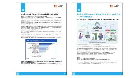 本マニュアルは、AI対策・LLMOに有効なプレスリリースの書き方を「タイトル設計→リード文→本文構成→配信後検証」まで7つの具体的手法に体系化した実践ガイドです。