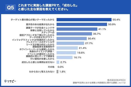 また、調査PR成功の要因として「ターゲット層の関心が高いテーマだったから」が55.4%で最多でした。