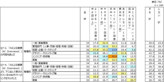 - エンジニア・技術職以外は「AIによる概要(AI Overviews)」の内容を読む「する 計」がいずれも4割を超えた