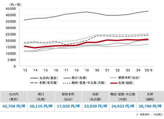 三幸エステート株式会社(本社:東京都中央区、取締役社長:福島正二郎)は、2025年6月度の福岡市オフィス賃貸状況(空室率&現空面積:全規模、募集賃料&募集面積:全規模、規模別空室率、主要エリア※1空室率:全規模)および全国6大都市(東京・札幌・仙台・名古屋・大阪・福岡)の大規模ビルのマーケットデータをまとめた「オフィスマーケット2025年7月号福岡」を公表します。