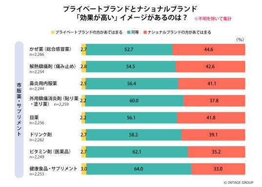 ※3 「効果が高い」というイメージをプライベートブランドとナショナルブランドで比較すると、「同等」と回答した生活者が全てのカテゴリにおいて半数以上