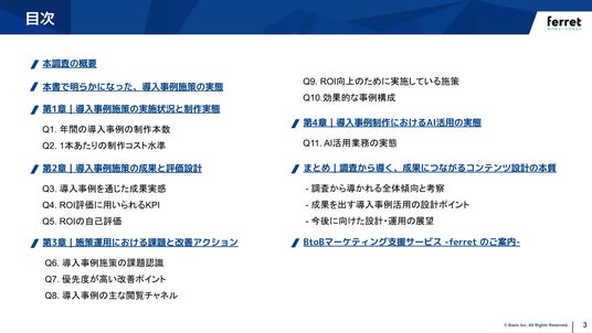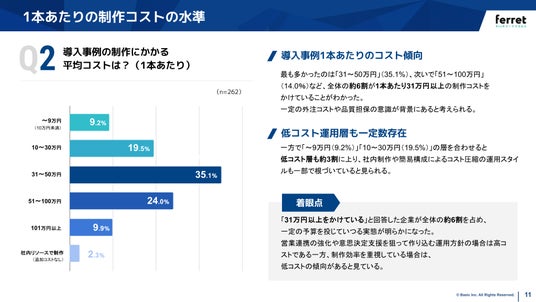 本調査では、導入事例の制作実態・コスト・営業との連携状況・成果評価・改善施策・AI活用などの項目を網羅的に調査。