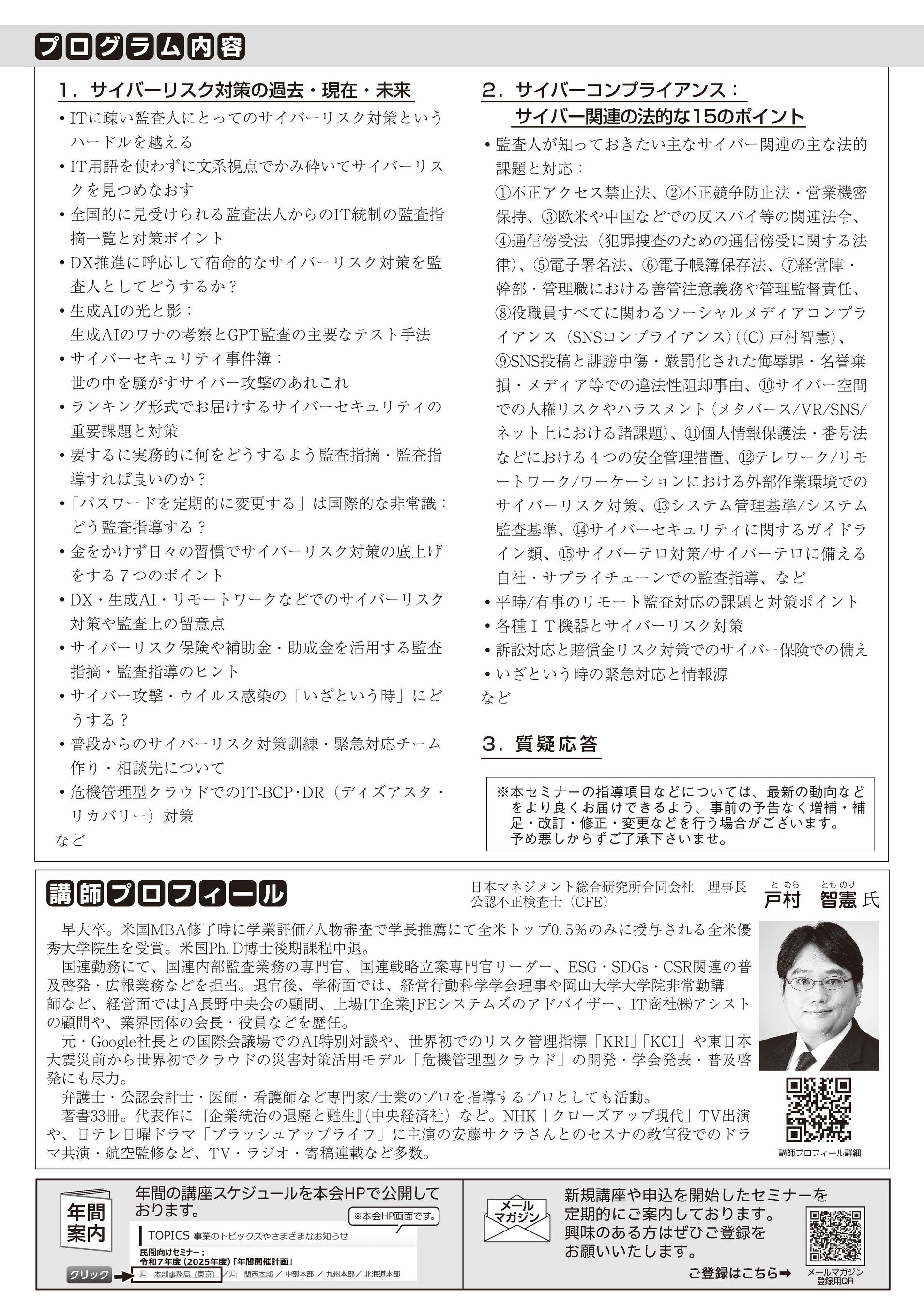 監査人のためのサイバーリスク対策はやわかり講座セミナーパンフレットP.2