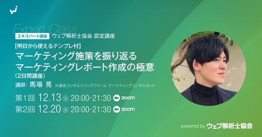 【ウェブ解析士協会】2024年12月13・20日(金)20:00~21:30 マーケティング施策を振り返るマーケティングレポート作成の極意(2日間講座)