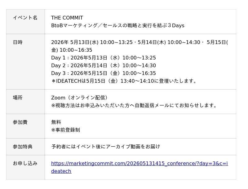 株式会社IDEATECH~BtoBマーケティング/セールスの戦略と実行を結ぶ 3日間イベント「THE COMMIT」~