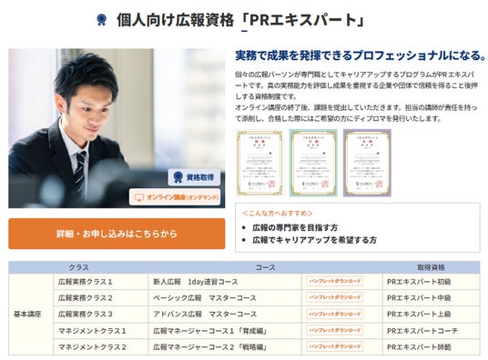・PRエキスパート資格~広報の専門家を目指す方や、キャリアアップを希望する方などに向けて認定資格試験を実施