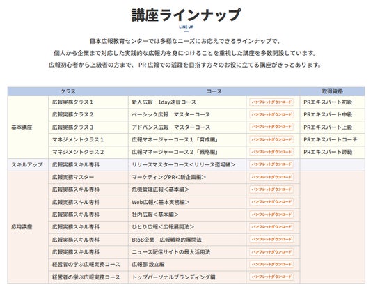 日本広報教育センターでは、知識の習得に留まらず、成果を出せる広報パーソンの育成に力を入れた実践的な講座を数多く提供しています。