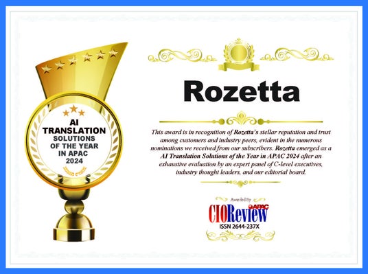「T-4OO」を含む当社翻訳サービスは、2024年に「アジア太平洋地域のAI翻訳ソリューション・オブ・ザ・イヤー」を受賞し、その先進性と社会貢献性が高く評価されました。