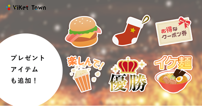 ViKet Townではプレゼントやメッセージ付きアイテムも毎月更新中。コミュニケーションを促すスタンプや、みていてワクワクする楽しんでスタンプ交換ができるアイテムも追加しています。