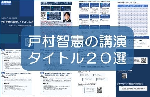 ◎ご依頼のご相談専用フォーム: https://www.jmri.co.jp/contact2.html◎その他、戸村の講演ラインナップ: https://www.jmri.co.jp/lecformance.html