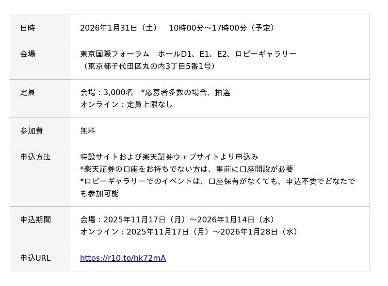 「楽天証券主催「新春フォーラム2026」 開催概要」