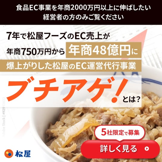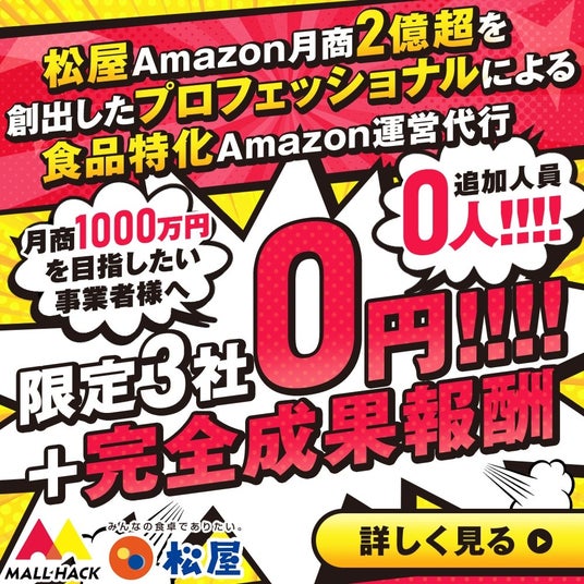 1, 新サービス【固定費0円~!Amazon食品ECで月商2.5億円突破!松屋のノウハウを貴社に!】