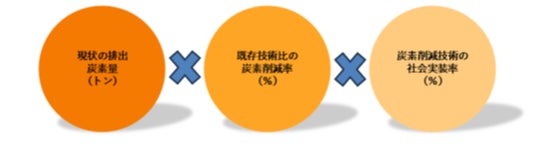 GHG削減ポテンシャルは、当該領域の技術で何トン(CO2換算)のGHGを削減できるか、の推定値です。現状のGHG排出量に削減率と社会実装率を乗じて求めました(図2)。