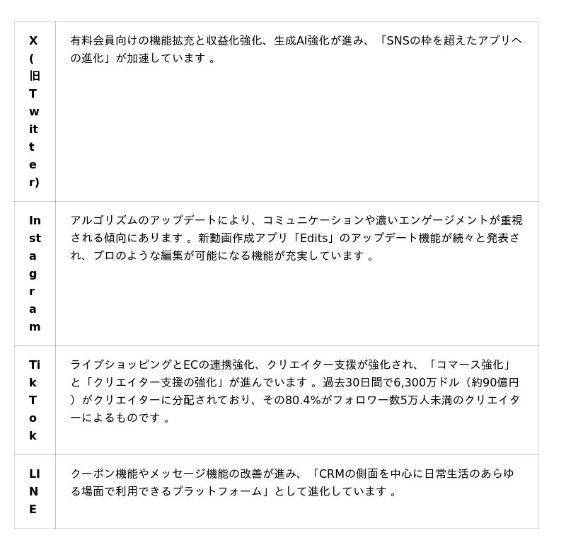 ■2025年上半期SNSトレンド総まとめレポートの主なポイント2025年上半期 主要SNS動向の総括: