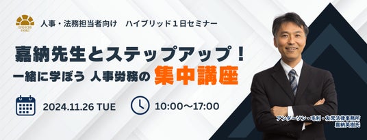 法律関連出版物、各種データベースを提供する第一法規株式会社(所在地:東京都港区、代表取締役社長:田中 英弥)は、オンラインセミナー「嘉納先生とステップアップ!一緒に学ぼう 人事労務の集中講座」を、2024年11月26日に開催します。