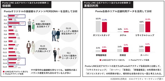PontaのLINE公式アカウントの友だち分析結果(左:図1、右:図2)