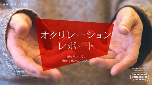 株式会社博報堂、博報堂DYグループの株式会社 SIGNING は、生活者発想で経営を考える研究開発・社会実装プロジェクト「HAKUHODO HUMANOMICS STUDIO」の活動の第三弾として「オクリレーションプロジェクト」を発足し、本日「オクリレーション・レポート」を発表しましたのでお知らせいたします。>レポートはこちら https://www.hakuhodo.co.jp/humanomics-studio/assets/pdf/OKURILATION_Report.pdf