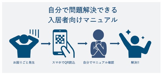 【「入居者たすけっと」とは?】「入居者たすけっと」は、賃貸物件でお困りごとが発生した際に、入居者が2次元コードからWEBマニュアルにアクセスすることで、入居者自身で問題が解決できる入居者専用のノーコードWEBマニュアルツールです。