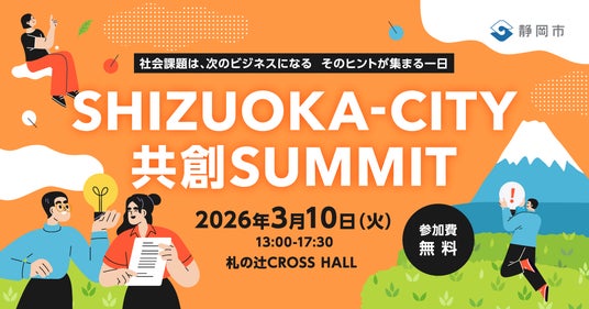 ■静岡市 × SHIZUCO「SHIZUOKA-CITY 共創SUMMIT」詳細・参加申込(会場/オンライン共通)https://bcform.at-s.com/form/seminar74(注)会場のスペースに限りがございますため、先着順とさせていただき、満席になりましたらオンラインのみのご案内となります。ご了承くださいませ。