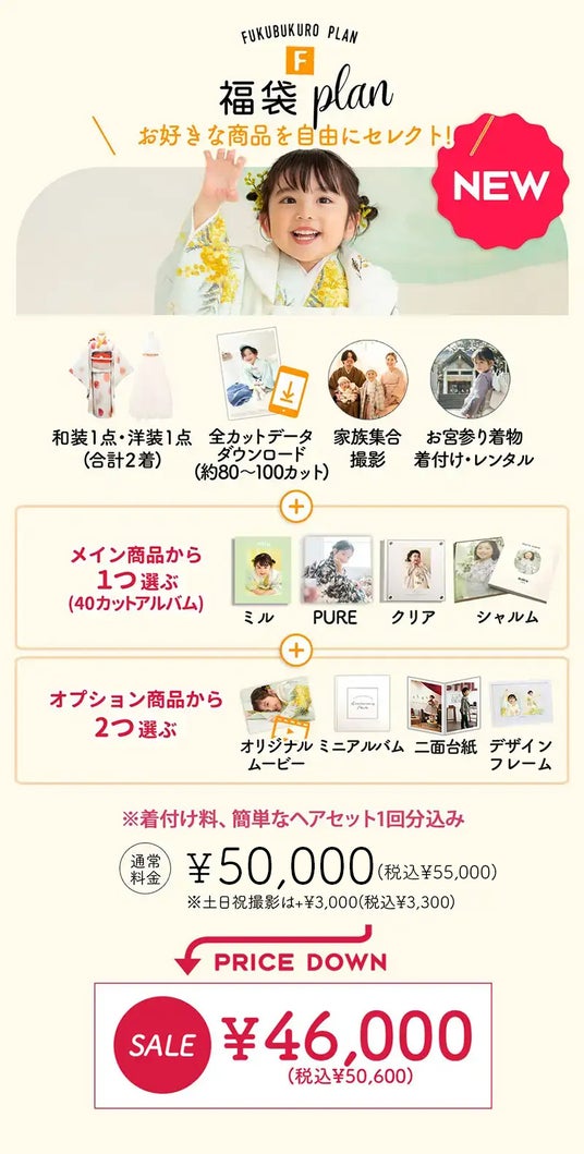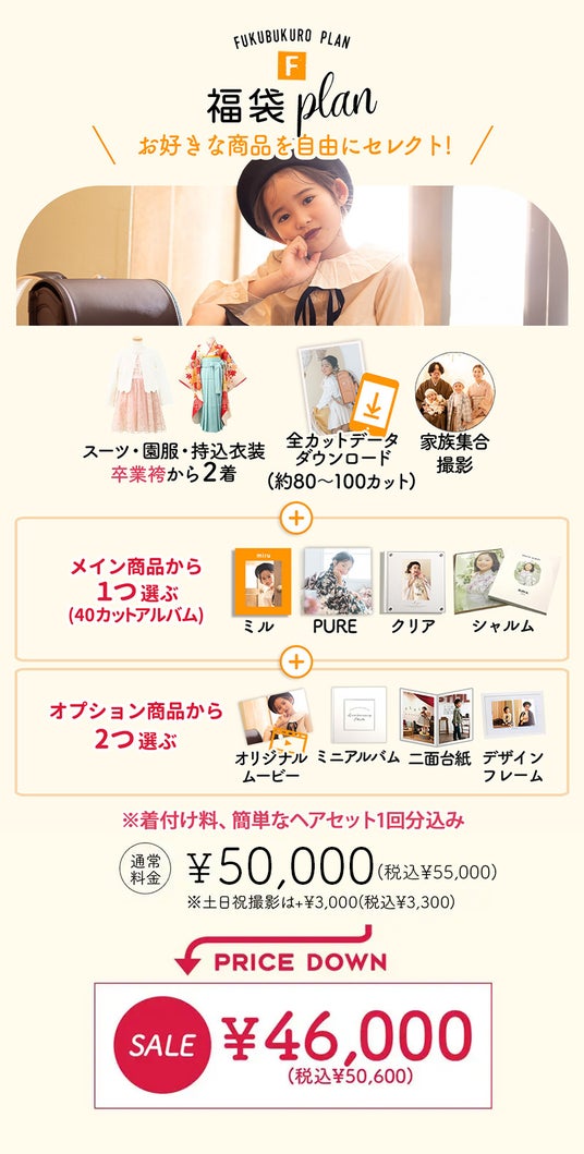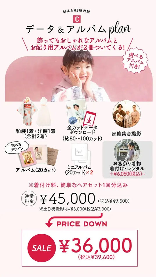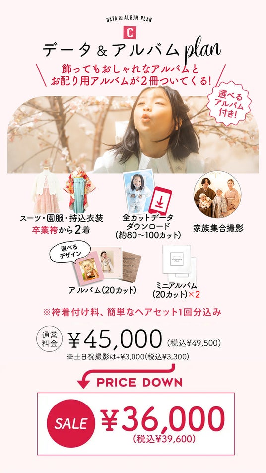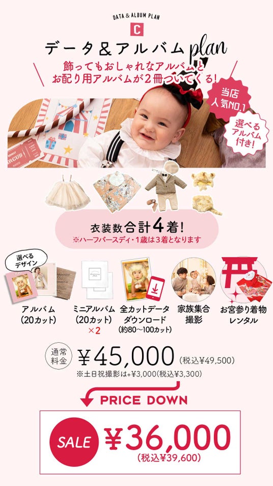 一番人気プランからアルバム&フォトグッズ付きプランまで幅広く割引