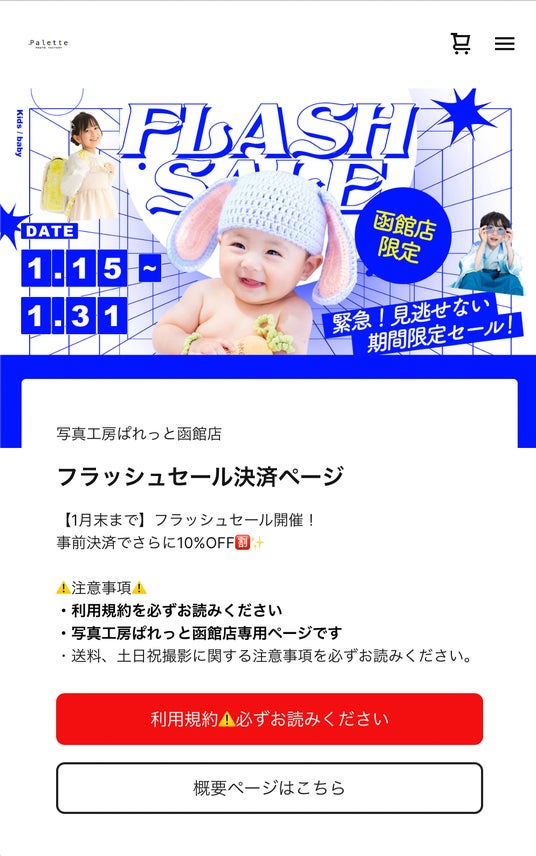 写真工房ぱれっと(本社/有限会社三景スタジオ)札幌&函館エリアで期間限定の"フラッシュセール"を開始。突発的、ゲリラ的なセールのため、ご検討いただいていた方は大チャンス。