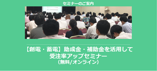 「【創電・蓄電】助成金・補助金を活用して受注率アップセミナー」を配信します。