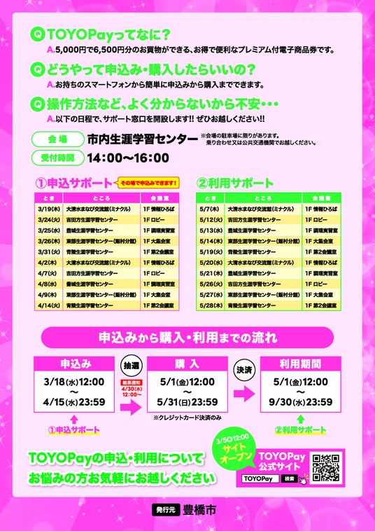 TOYOpay専用Webサイト及び、広報とよはし3月号に掲載しています。