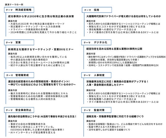 講座内容◆AI・データ活用で運送会社が経営をアップデートする重要性 ・運送会社がAI・ChatGPTを活用するには?