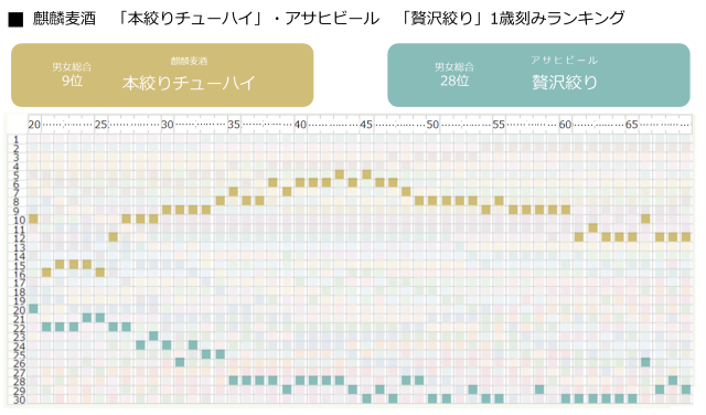 ~麒麟麦酒「本搾りチューハイ」は43歳、アサヒビール「贅沢搾り」は20歳でピーク!~
