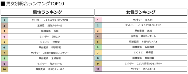 男性1位はサントリー「-196℃ストロングゼロ」、女性1位はサントリー「ほろよい」