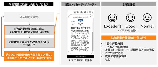 今回サービス提供者としてALSOKを迎え、データ活用により可視化された、住まい手の行動習慣に準じて価格が変動するサービスを開始します。このサービスを利用することで防犯行動が可視化され、アプリに表示されることで住まい手の防犯意識を高め、行動改善を促すこともできます。
