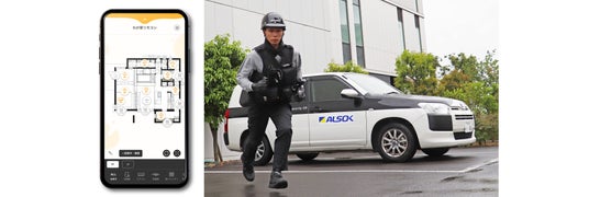 PLATFORM HOUSE(プラットフォームハウス)アプリ画面(左)/ALSOK駆けつけ防犯サービスイメージ(右)