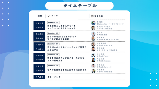 このカンファレンスでは、新規事業の立ち上げや拡大のフロントラインで活躍する次世代のオピニオンリーダーにご登壇頂き、リアルな経験や知見を基に、新規事業の成功への道のりや実践的な戦略、そして事業成長に最も効果的な方法をお話しいただきます。