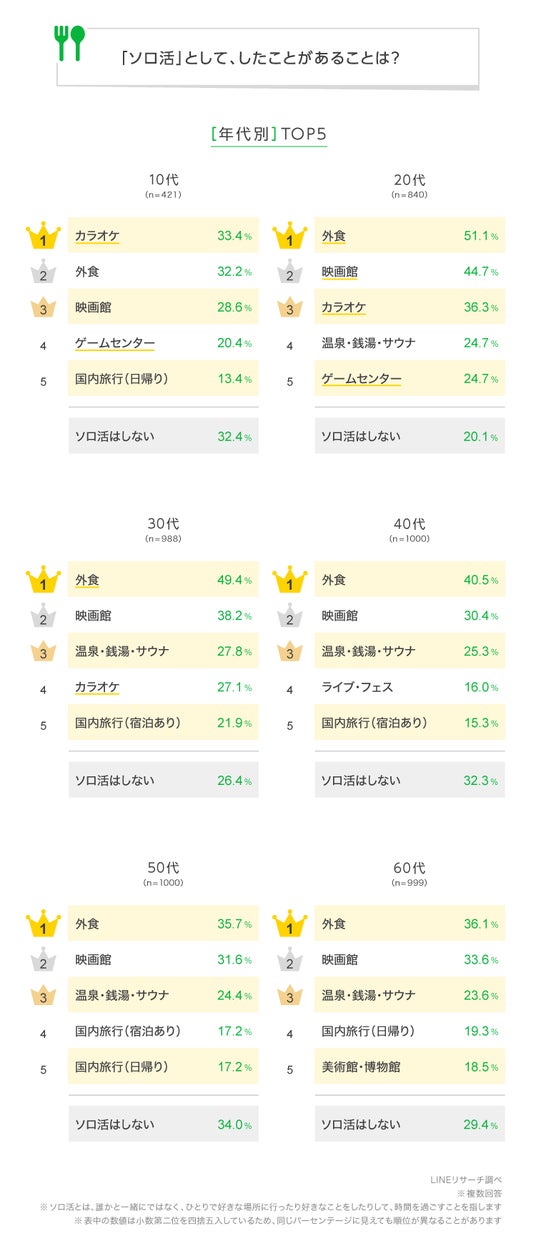 LINEリサーチ、全国10~60代の男女を対象に、ソロ活に関する調査を実施