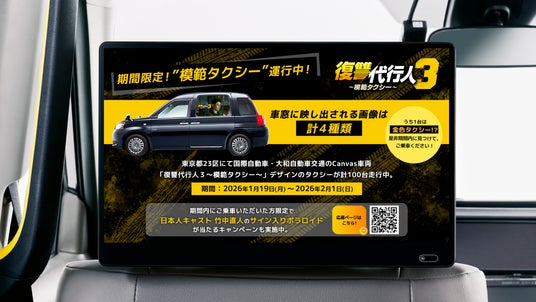 株式会社NTTドコモ(以下、ドコモ)が運営する映像配信サービス「Lemino(R)」において、全話独占配信中の韓国ドラマ「復讐代行人3~模範タクシー~」。本作の配信を記念し、作品デザインを施したオリジナルタクシーが、2026年1月19日(月)から2月1日(日)までの期間限定で、東京都内(23区・武蔵野/三鷹地区)を走行いたしました。