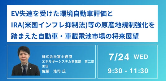 主任 佐藤 浩司 氏を招聘し、今後の自動車・車載電池産業の方向性について詳説いただくセミナーを開催します。