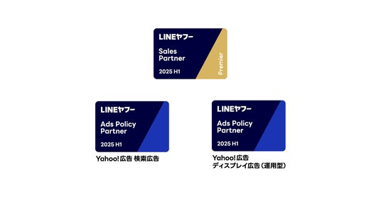 また、LINEヤフーが指定する特定の注力領域において優秀な実績を残したパートナーに付与する認定バッジは、Yahoo!広告において広告ポリシーの遵守が評価される「Ads Policy Badge Yahoo!広告 検索広告」と「Ads Policy Badge Yahoo!広告 ディスプレイ広告(運用型)」を取得いたしました。