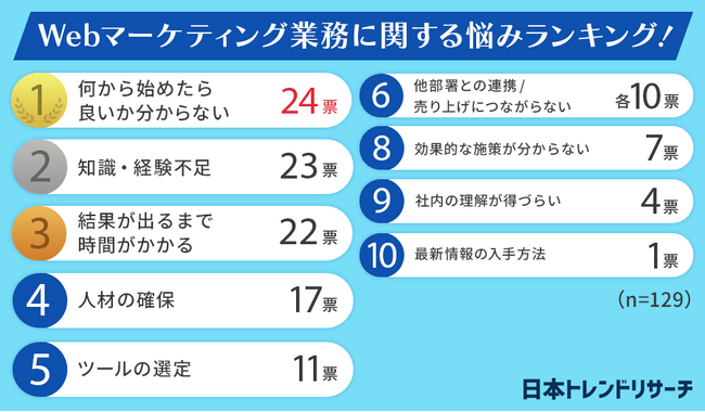 【Webマーケティングの業務経験がある129人に聞いた】webマーケ業務上の悩みランキング!