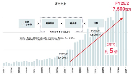 訪日観光客数は2024年に過去最高を記録するなど、宿泊需要が増加していく中で、当社はStayXを活用して「空間」と「ゲスト」をつなぐことに注力してまいりました。その結果、前期の運営売上は75億円を超え、運営ユニット数も3,000ユニットを超えるなど、着実に事業を拡大してまいりました。