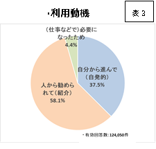表3は、本プロジェクトでクラブを一本プレゼントした方を対象に「利用動機」をアンケートした結果ですが、58.1%もの方が「人から勧められて(紹介)」が断トツ