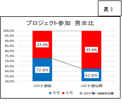 コロナ期以前(~2020年)は27.2%だった女性の構成比は、