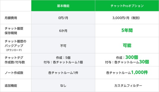 <「基本機能」と「チャットProオプション」の比較>