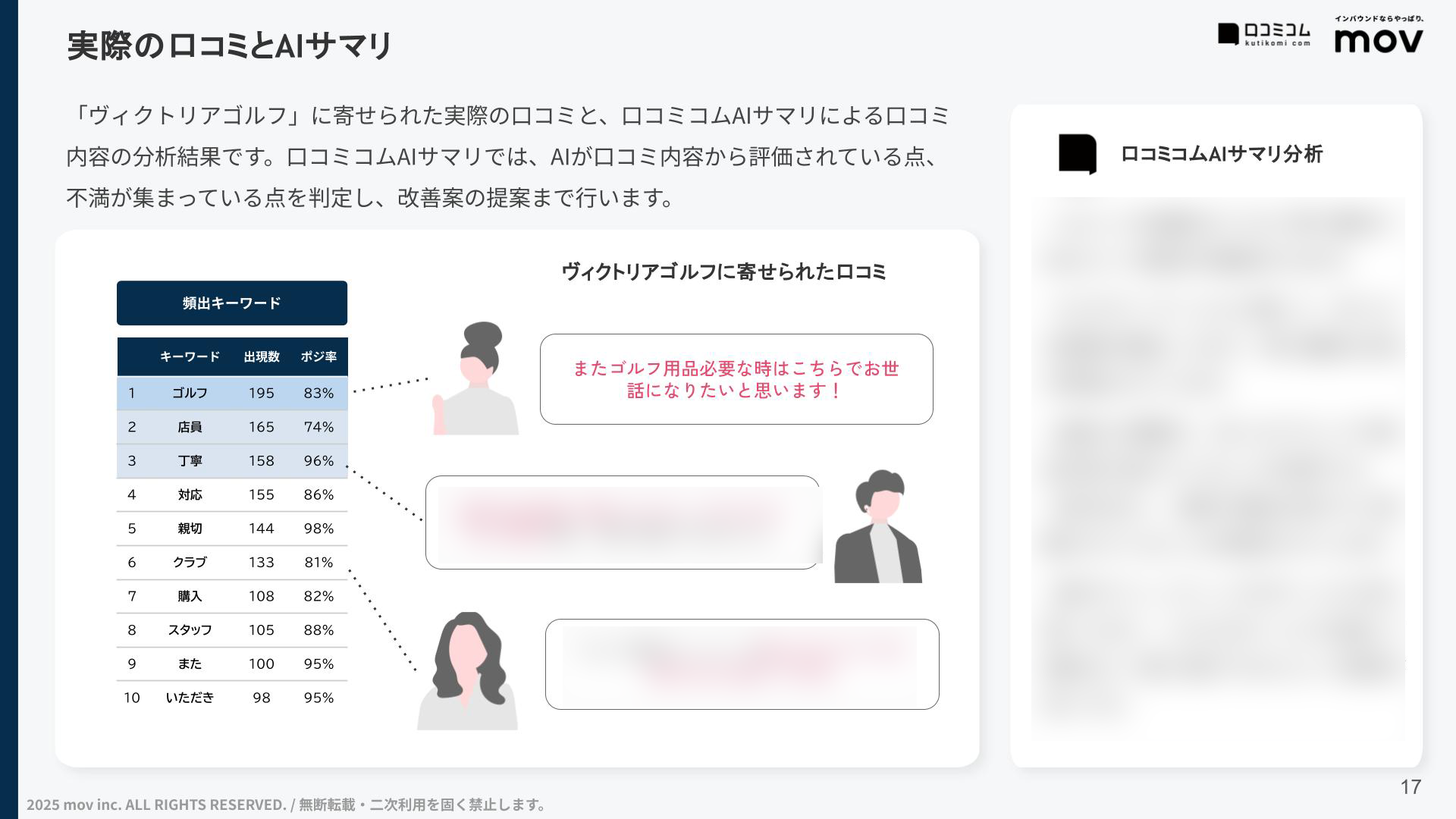 ここからは、独自調査で明らかとなった口コミ分析結果を一部ご紹介します。