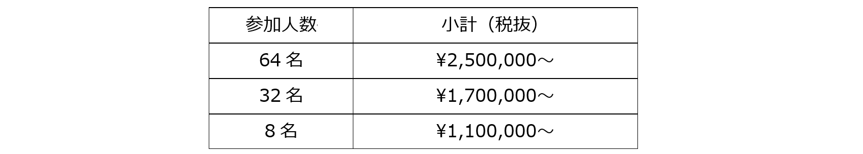 ※ 金額は概算になります。またプログラム実施内容に応じて変動します。
