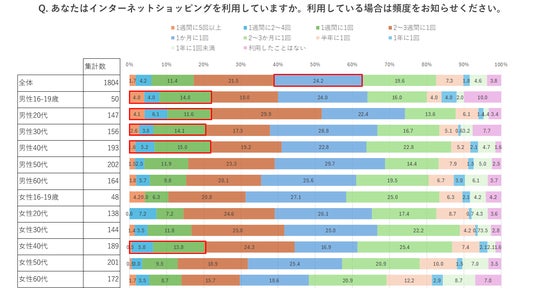 最初に、インターネットショッピングの利用頻度について尋ねました。