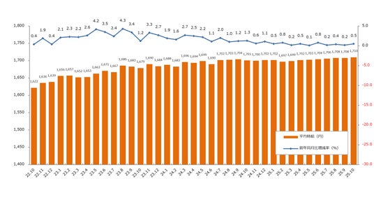 1,710円(前月比+2円・0.1%増、前年同月比+9円・0.5%増)で、過去最高時給を更新。前年同月を上回るのは38ヵ月連続です。