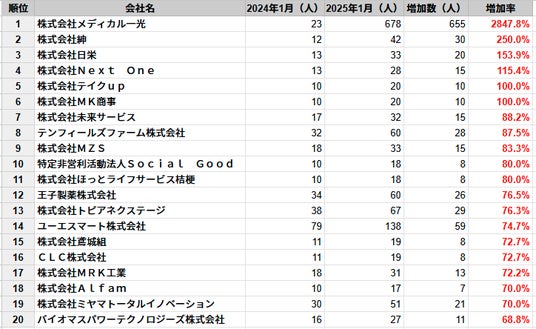 (※増加率=(2025年従業員数 - 2024年従業員数) ÷ 2024年従業員数 × 100)