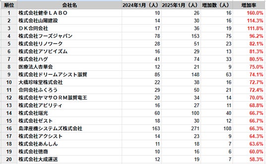 (※増加率=(2025年従業員数 - 2024年従業員数) ÷ 2024年従業員数 × 100)