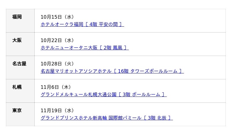 「Sky株式会社 ソリューションフェア 2025」Webサイトhttps://reg.skygroup.jp/solutionfair_2025/※ 会場ごとにお座席に限りがあります。恐れ入りますが、ご予約は抽選とさせていただきます。